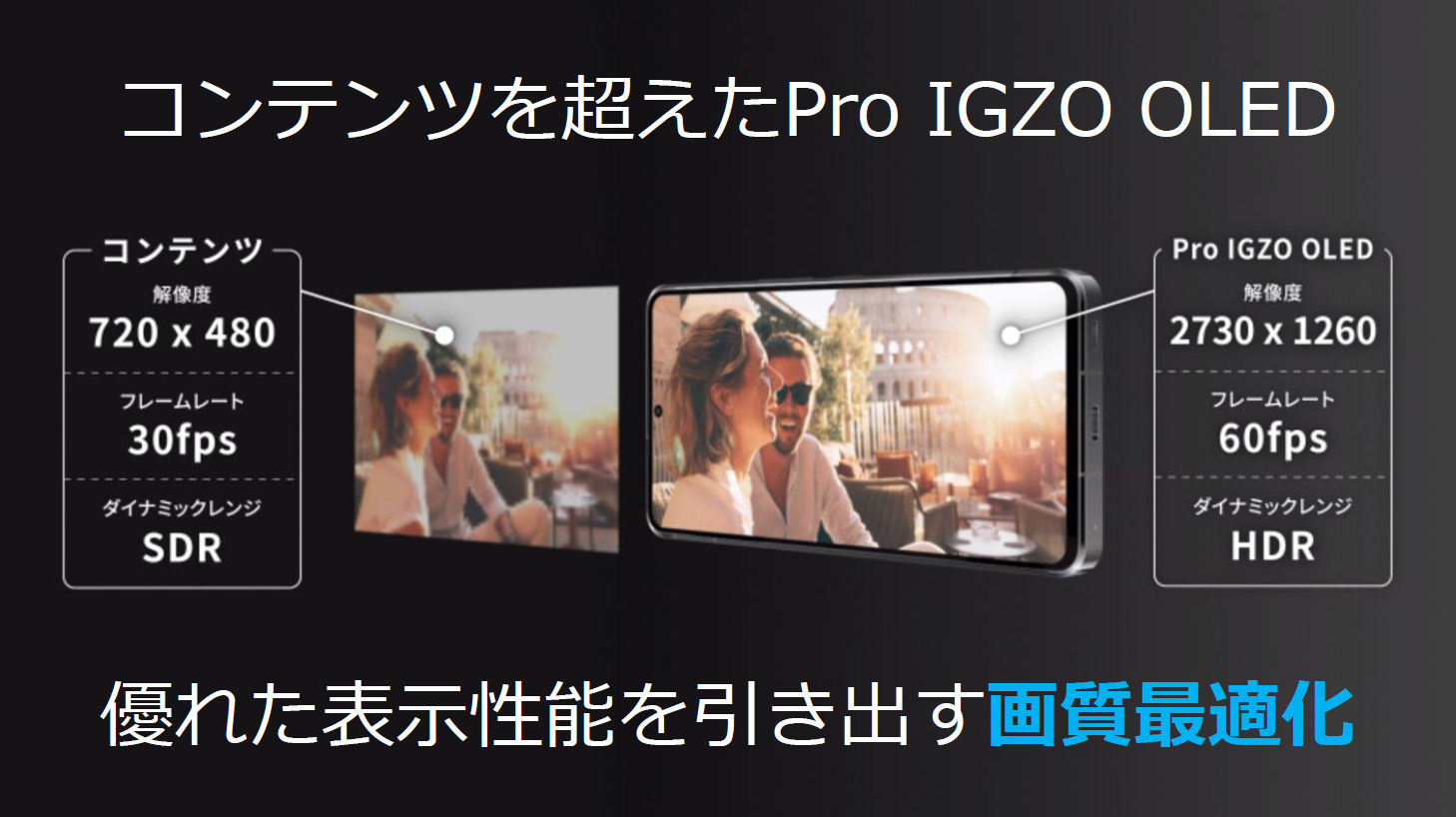 - ディスプレイ:6.6インチ(2730×1260・Pro IGZO OLED・1~240Hz・Gorilla Glass Victus)、DolbyVisionサポート