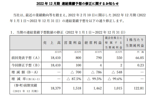 2022 年 12 月期 連結業績予想の修正に関するお知らせ