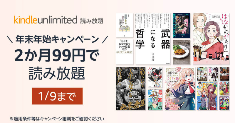 Kindle Unlimited 2か月99円(対象者限定・1/9まで)