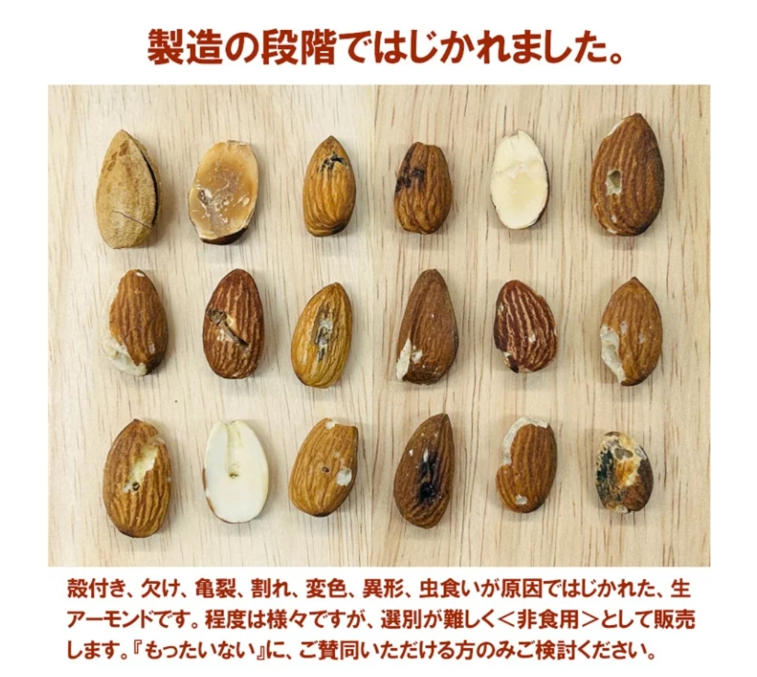 食用以外でのご利用をおすすめいたします。<非食用>生アーモンド 1kg〔チャック付〕/メール便 送料無料 こわけや