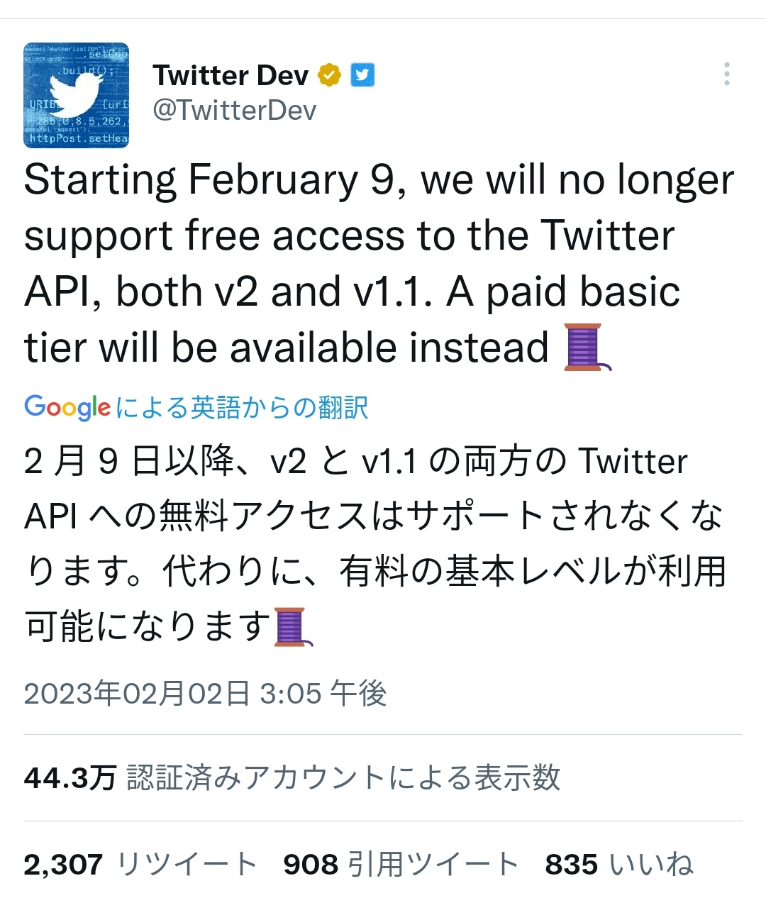 サードパーティークライアント停止は数日後公式発表だったから成長したぞ
