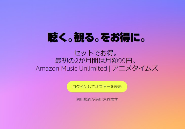 Amazon Music Unlimite・アニメタイムズ2カ月99円
