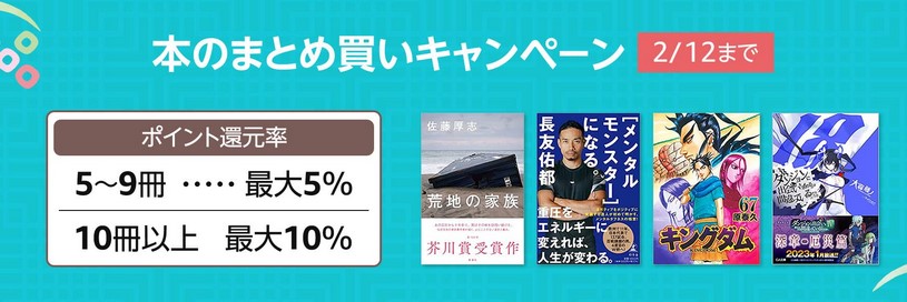 本のまとめ買いキャンペーン 5~9冊最大5%、10冊以上最大10%(2/12まで)