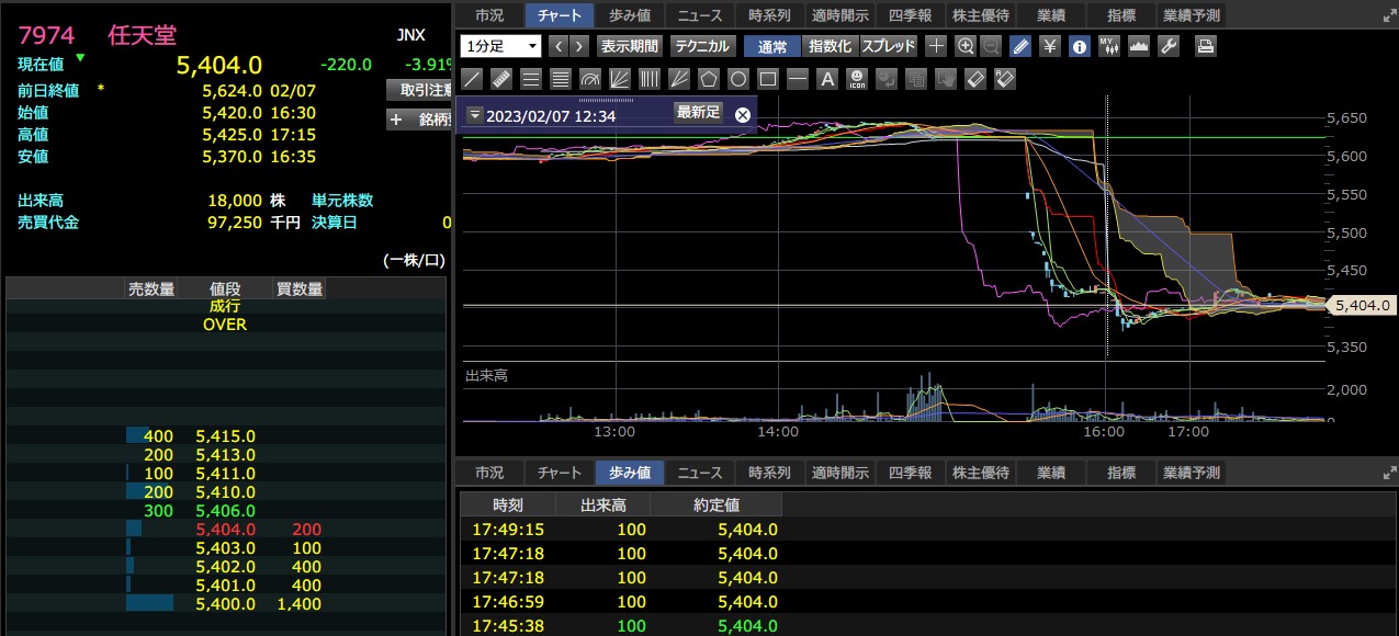任天堂5400でナンピンしなかった時後悔したけどさらに下でナンピンできそう(´・ω・`)