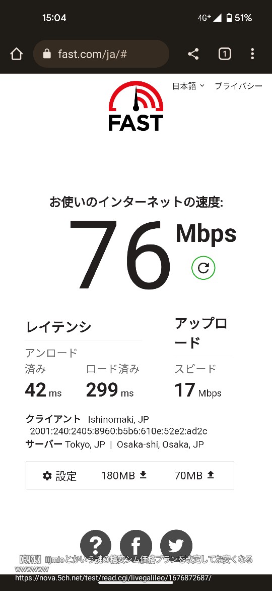 povoの低速モード(課金前のデフォルト)と違ってiijmioの低速モード(ギガ減らないモード)普通に使えるからええわ