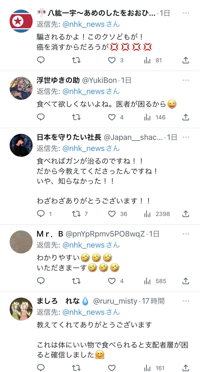 ワクチンは信用しないくせにビワの種の毒とかいうすでに常識になってる話は見向きもしないんや?