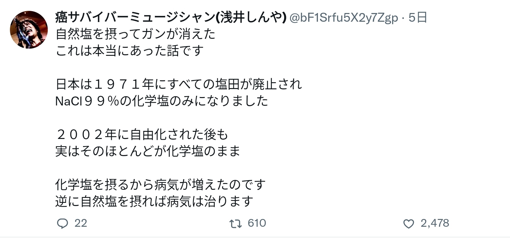自然塩なんて変な名前つけてるからアレだけど岩塩にはカリウム・マグネシウム等のミネラルが豊富だからミネラル不足しがちな日本人には有益なのは間違いではないんよ
