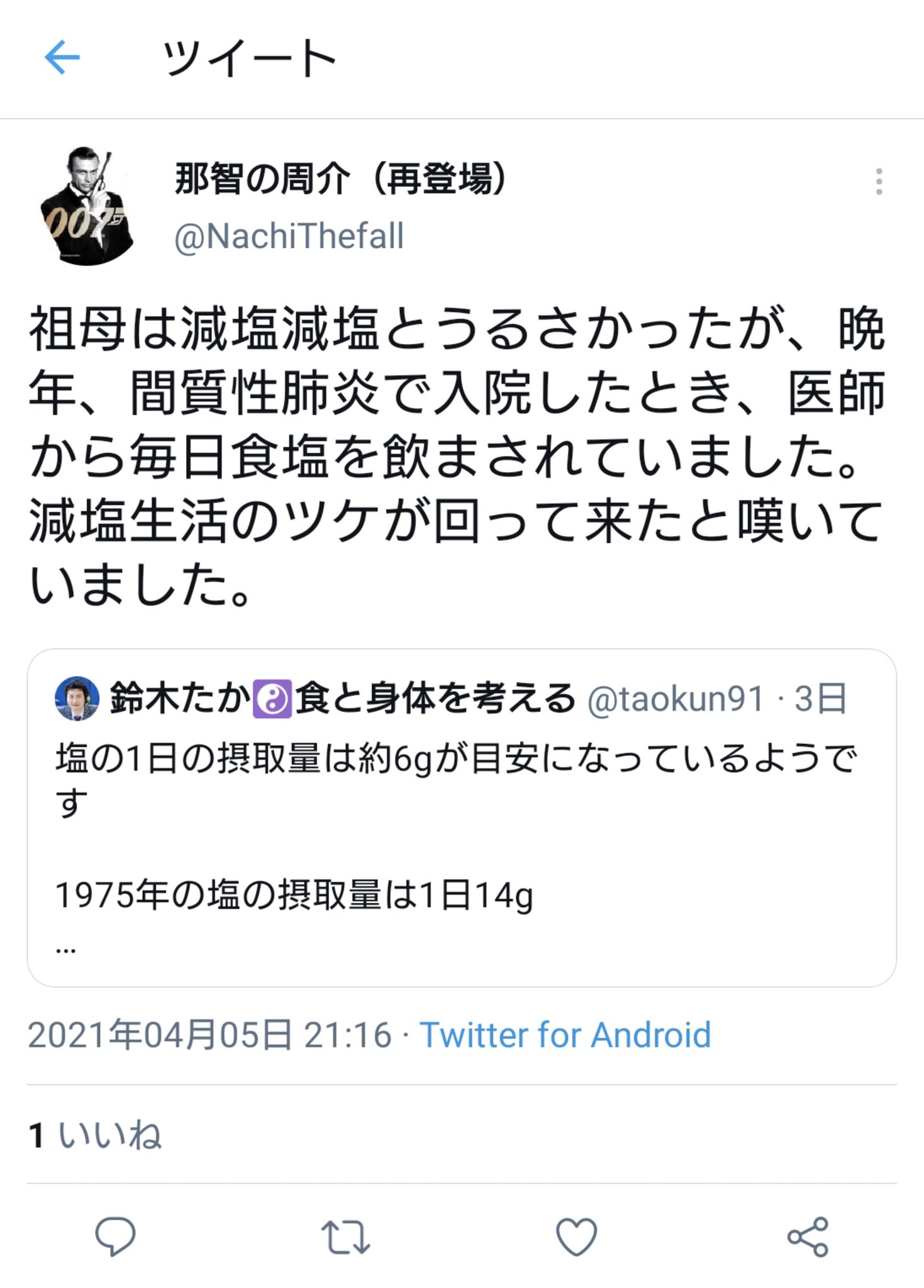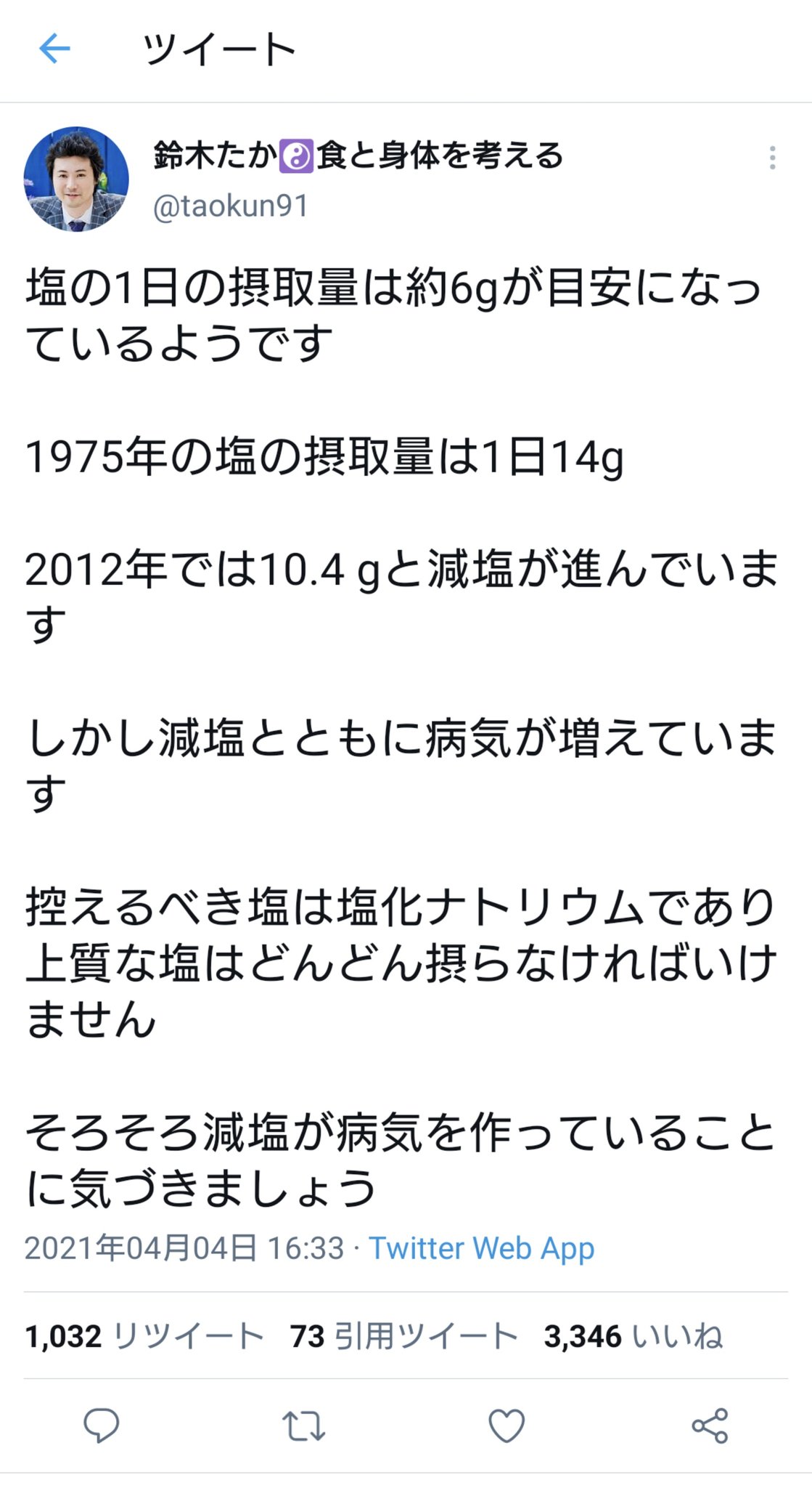 減塩すると体を冷やすことになって、万病のもととなる。