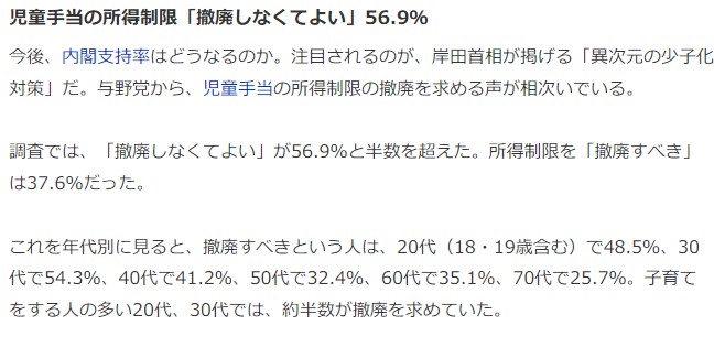 出産費用や育児費用を無くすみたいなダイレクトな出産育児支援だったら制限無くて良いと思うけど、そうすると産婦人科とかが出産費用を値上げして実質的に中抜き状態にされたケースとかがあるから難しい。