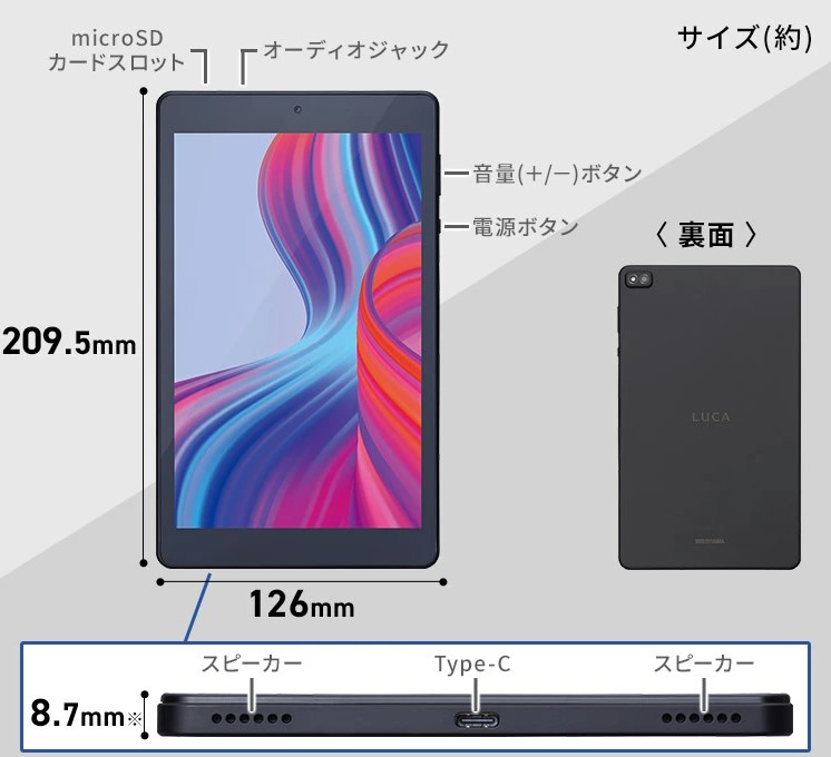 - サイズ:209.5 x 126 x 8.7mm / 374g