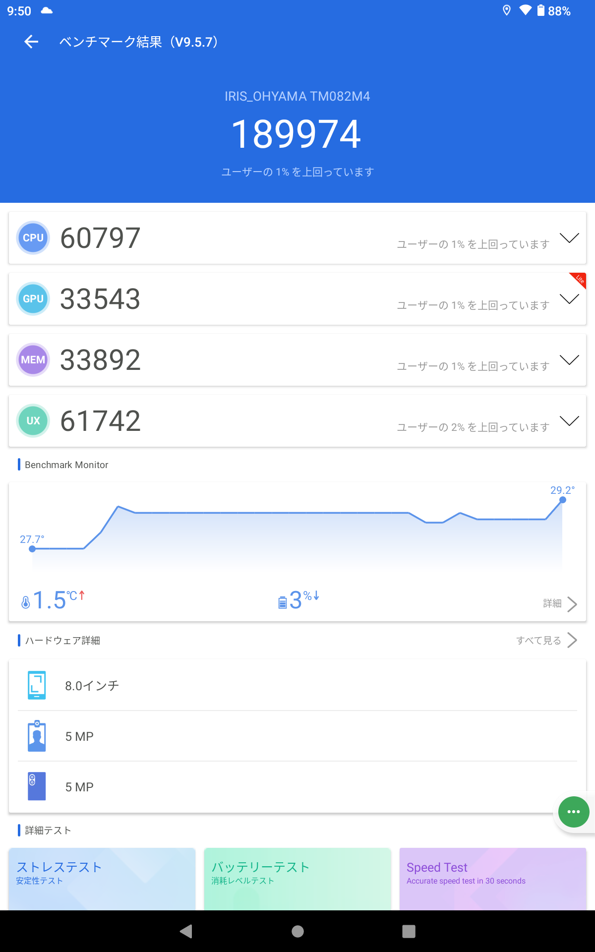 今antutuでベンチマークしたらver.9.5.7で189974でした