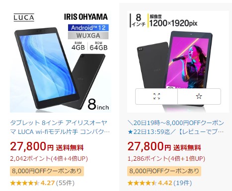 楽天で27,800円で8000円OFFクーポン付きが復活してるな