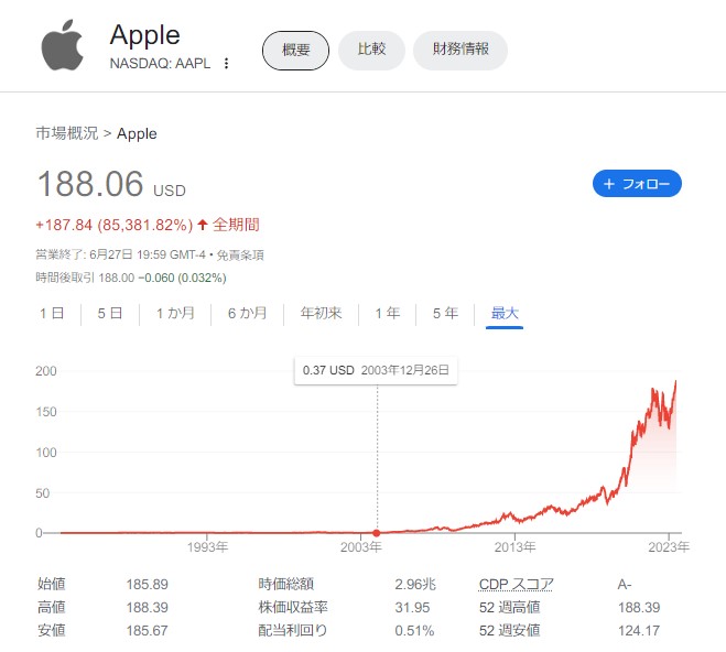 20年前のApple株ってよく買えたな