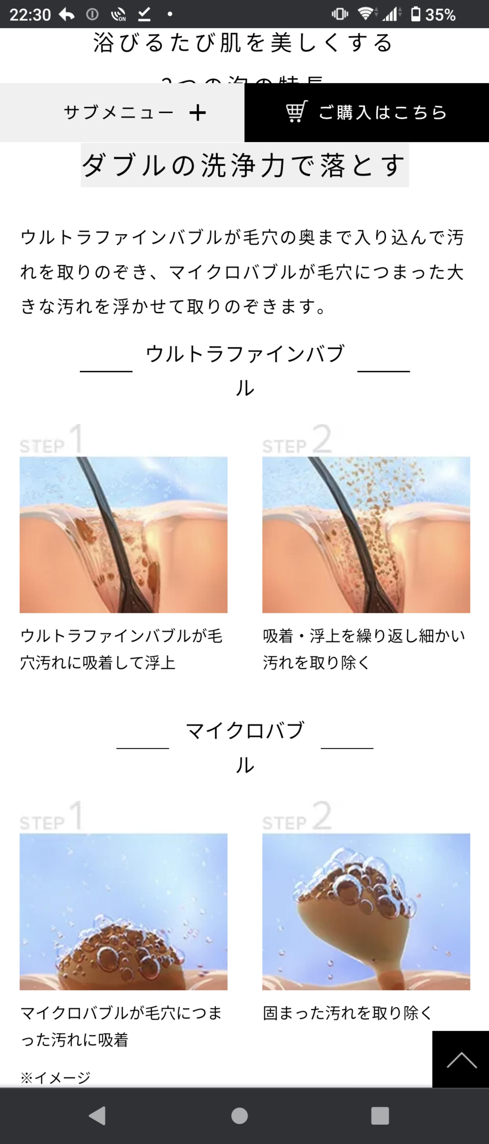 毛髪よりも小さいマイクロナノバブルはマイナスの電気を帯びていて脂を削ぎ落とす効果が高いと科学的に実証されてるよw