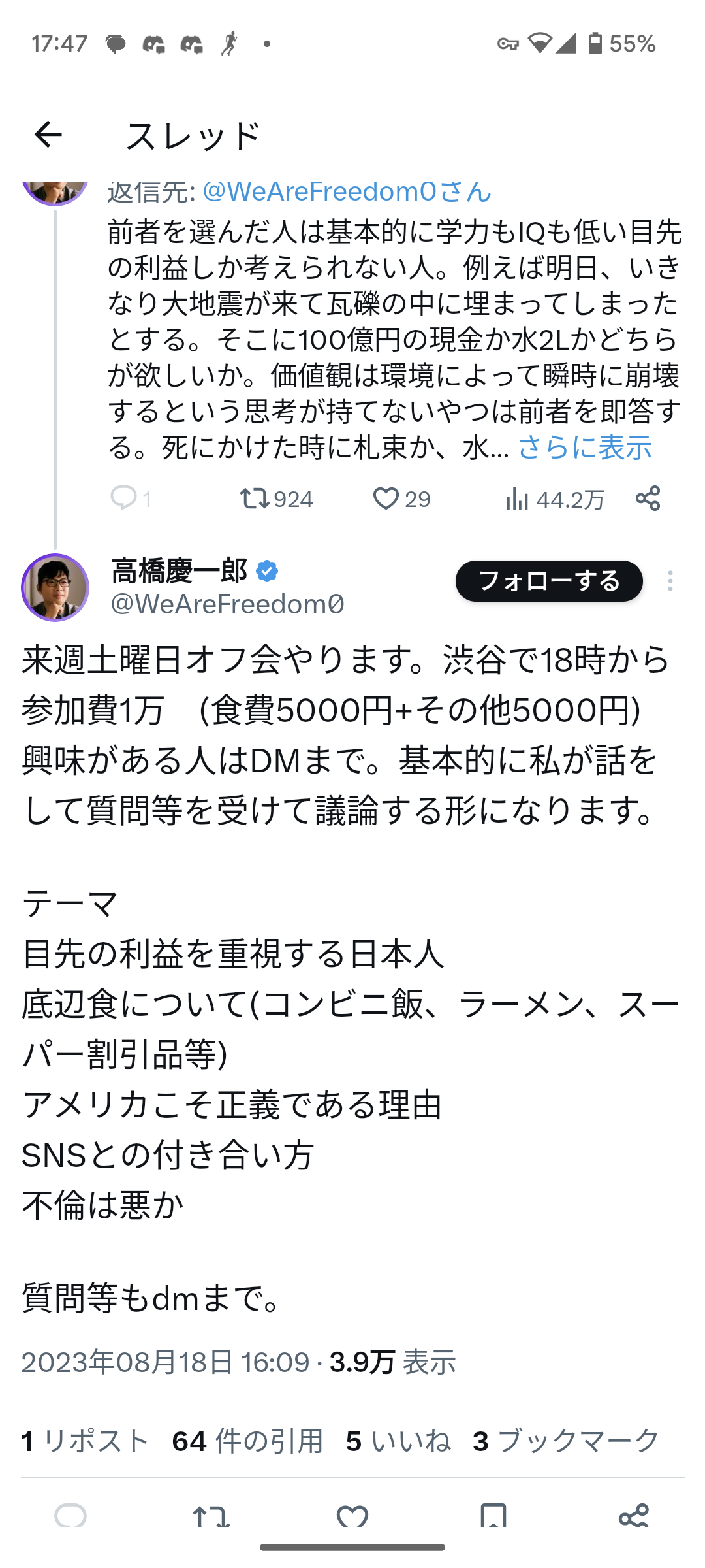 コイツのオフ会に集まる奴らはみんな馬鹿って事だな