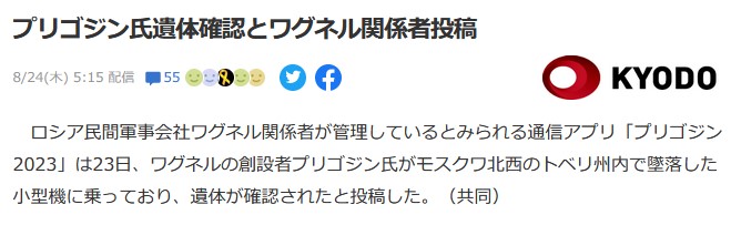 そもそも、報道機関に「プリコジン氏、アフリカへ出発か」とか把握されとる時点でアカンやん