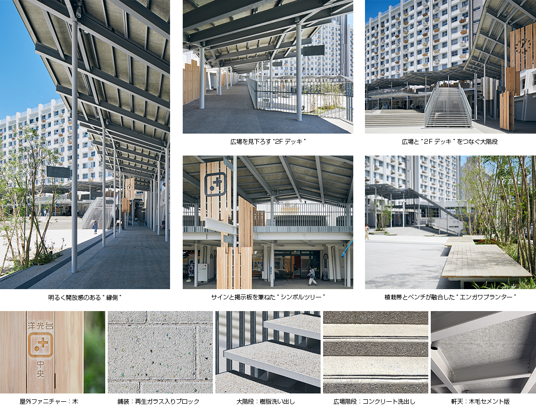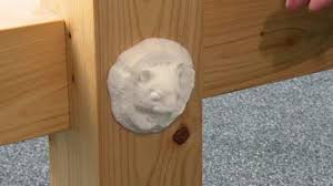 >接続部分の金物を隠すキャップは、ムササビが木の幹の穴から顔を出す様子を表している。