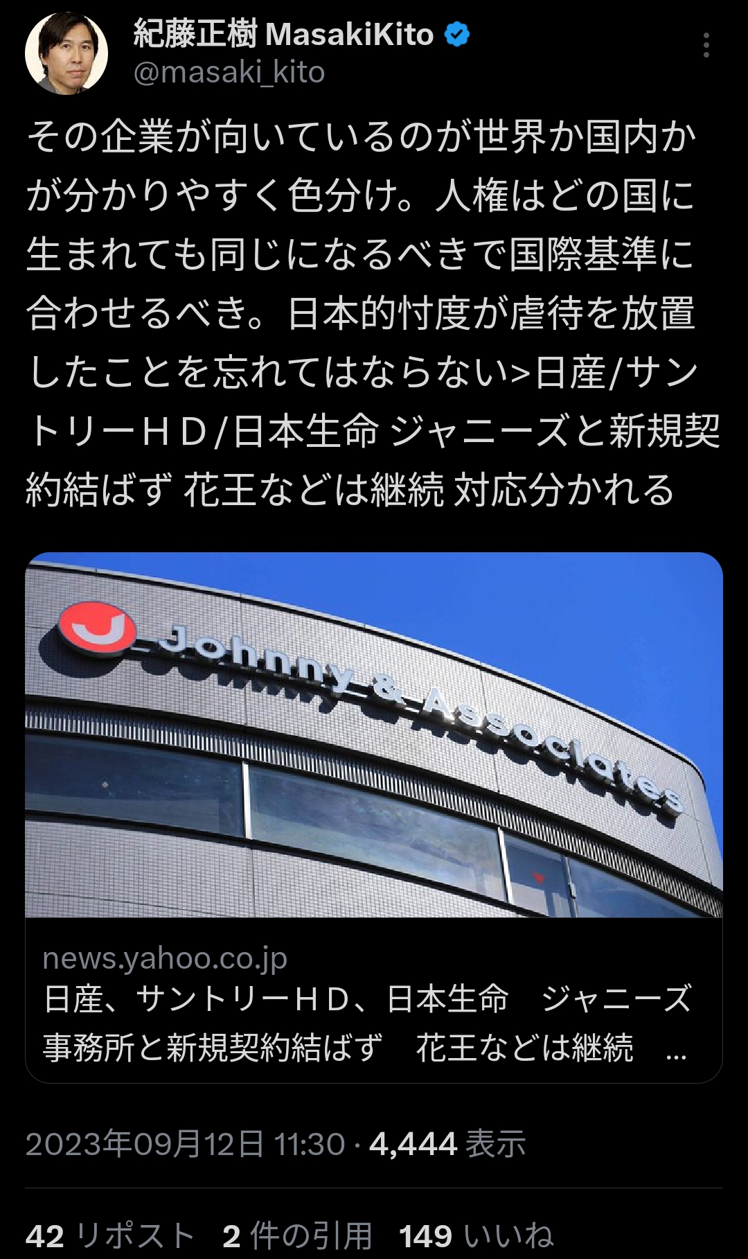 その意思が生きてるジャニーズ事務所を罰するんやで