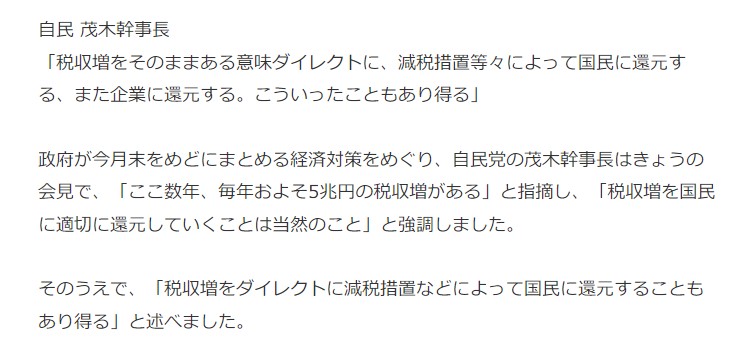 ってか税収増えた分国民生活に還元するのが当たり前なのに有り得るとか上から目線な時点で特権階級意識丸出しなんすよ