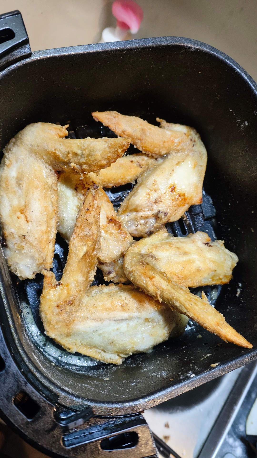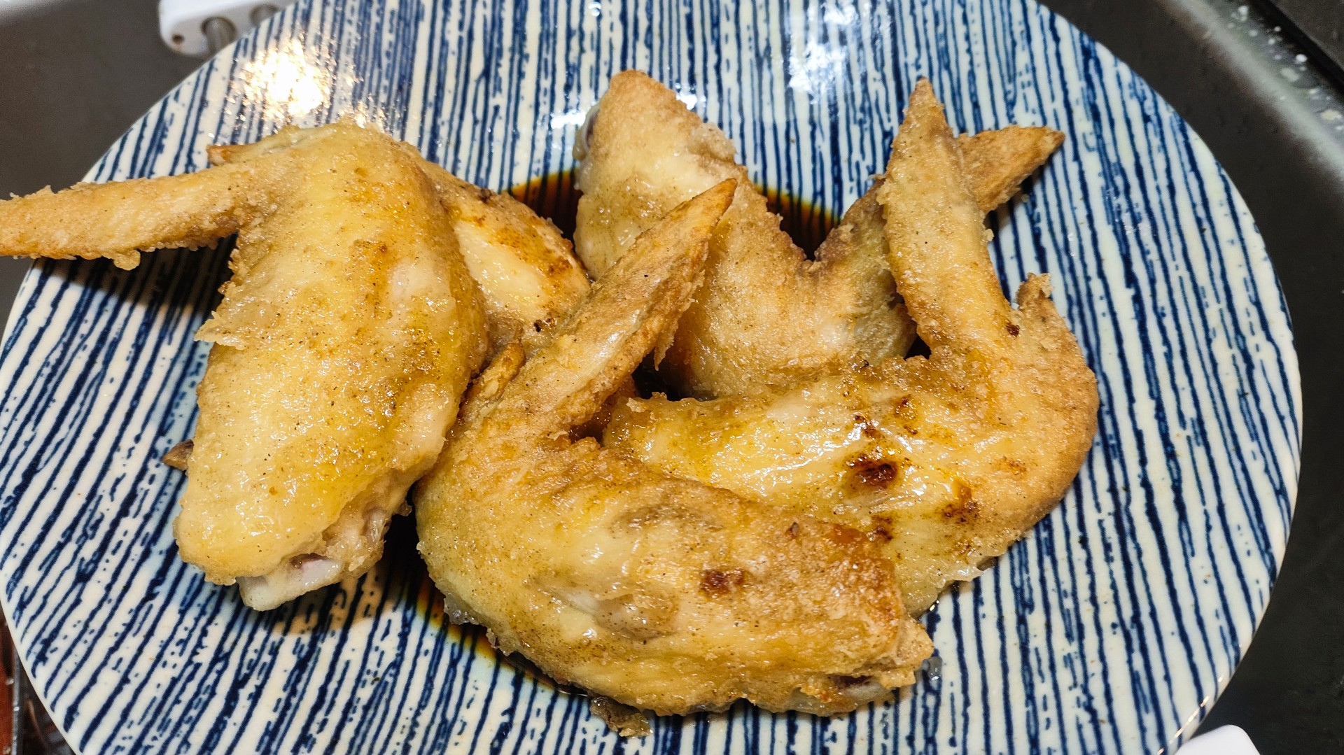 手羽先に油分が多いからオイルスプレーする必要なくここまで揚がる
