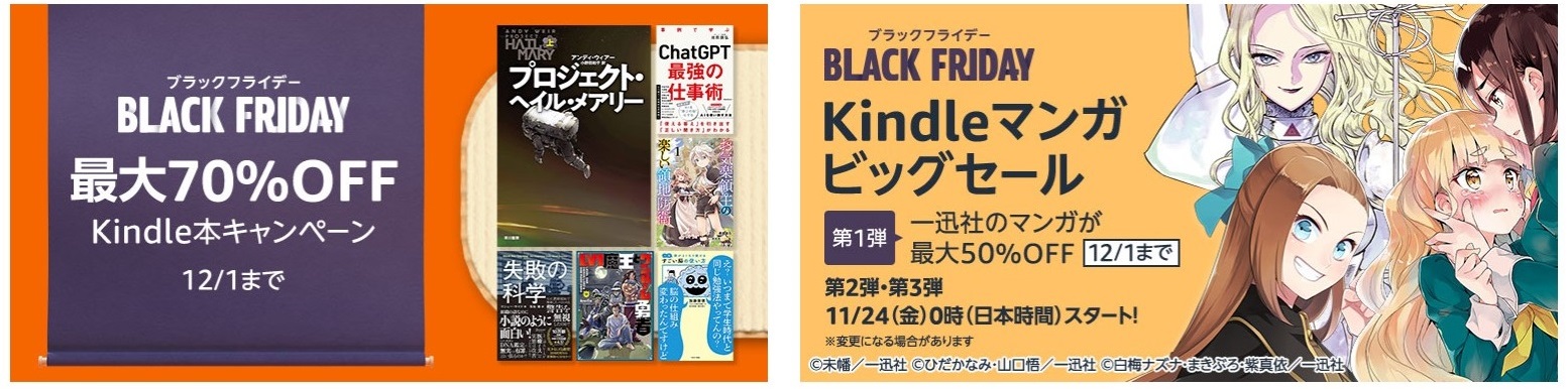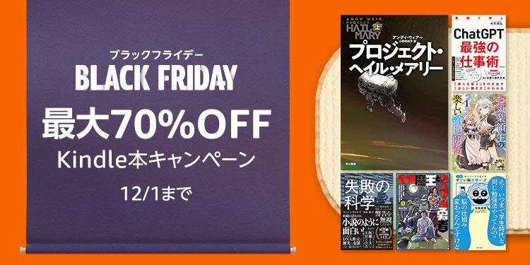 【ブラックフライデー】最大70%OFF Kindle本キャンペ-ン(4万冊以上・12/1まで)