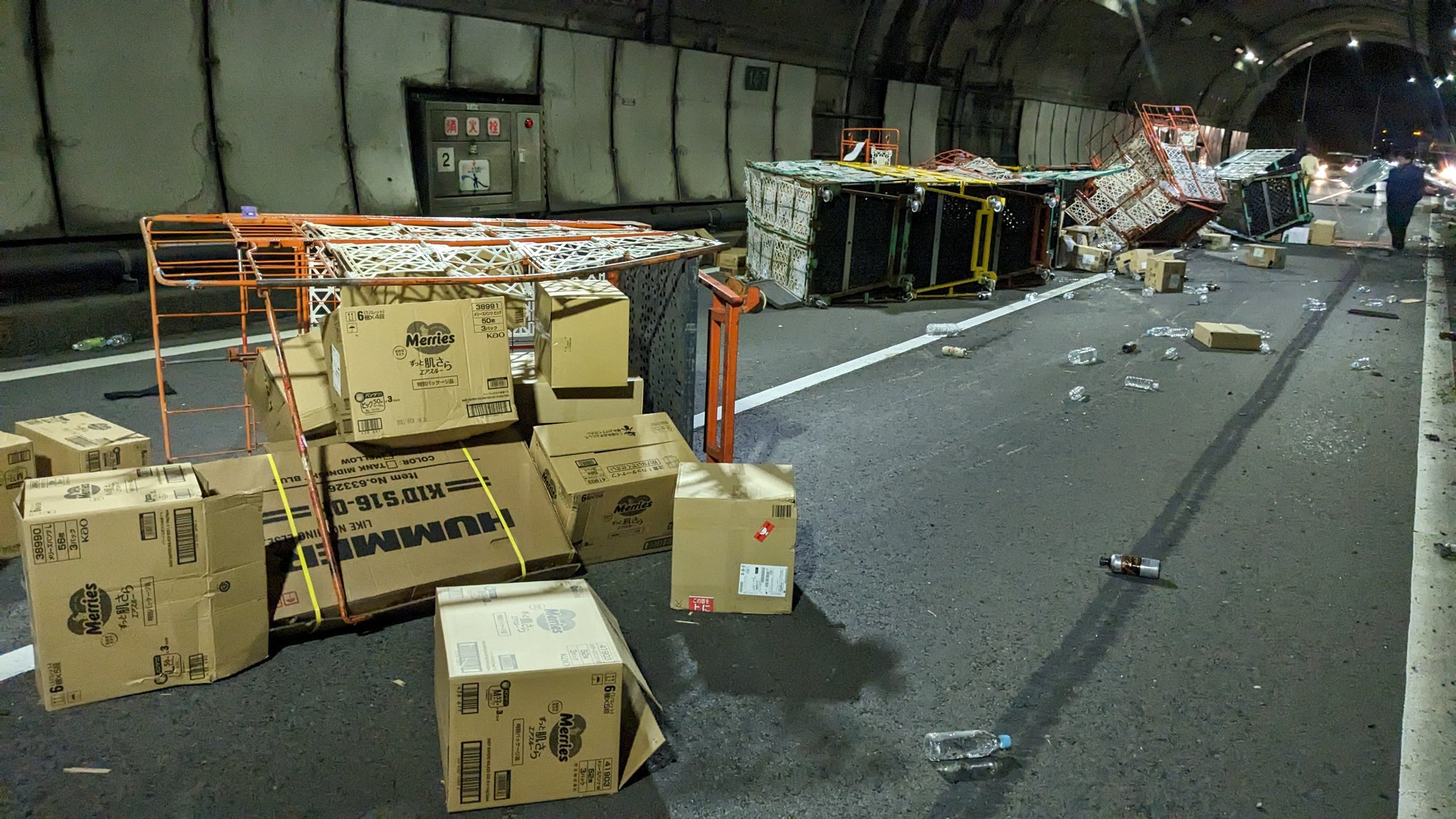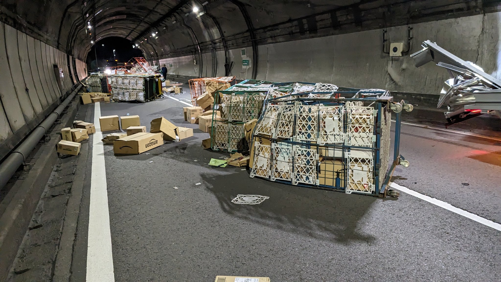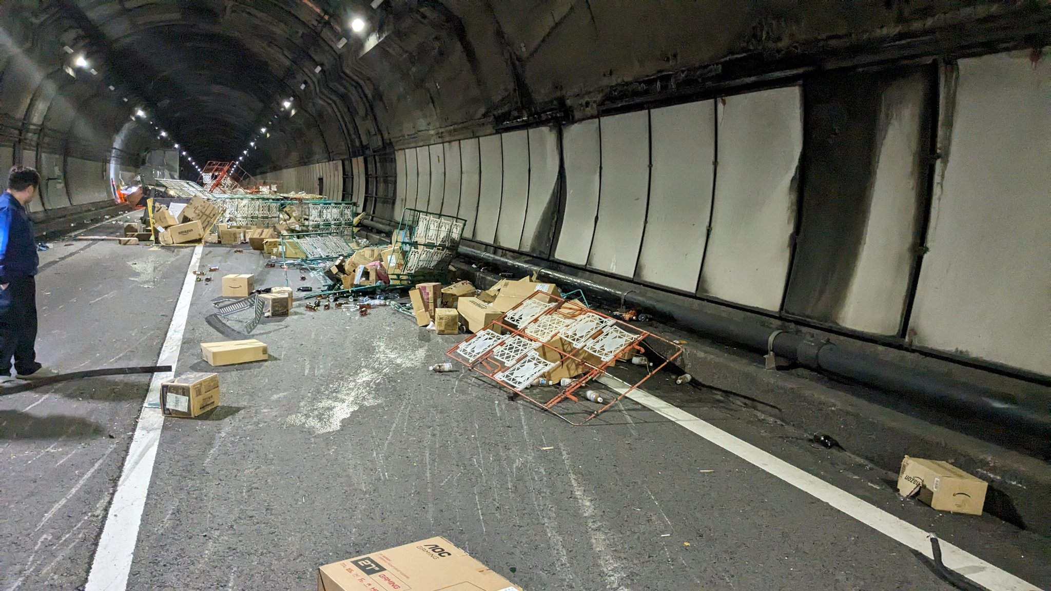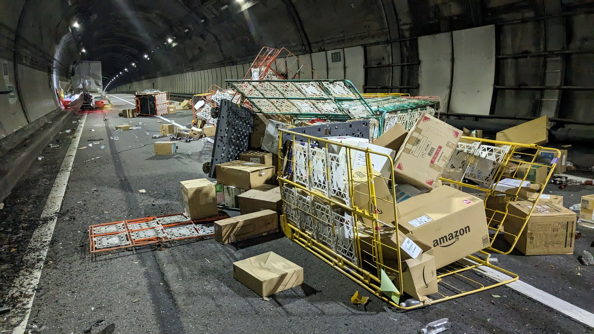 【悲報】トラック事故ってAmazonの荷物が道路に大量落下
