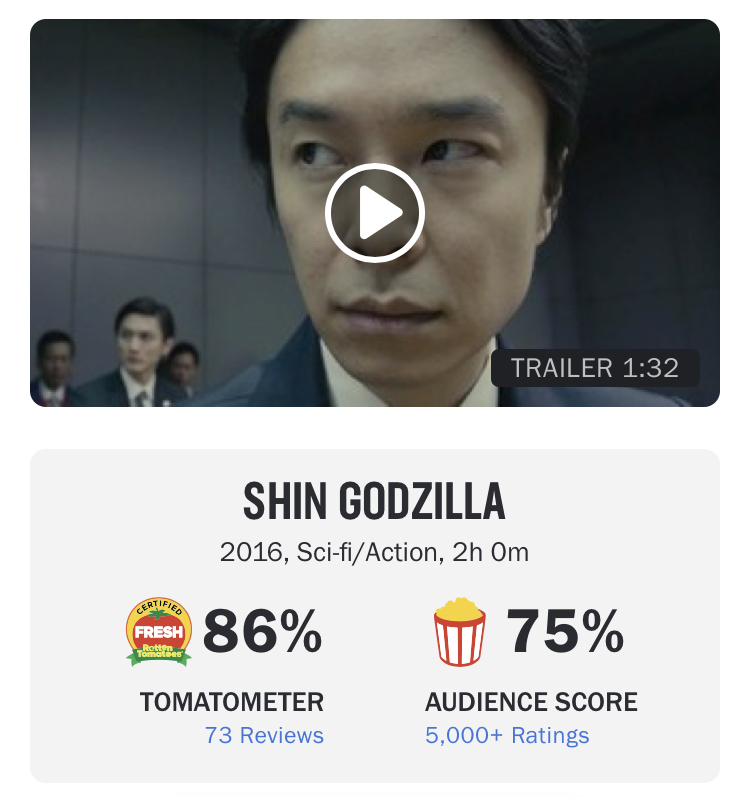 シンゴジラは個人的にハマれんかったけどそれとは違うんか?
