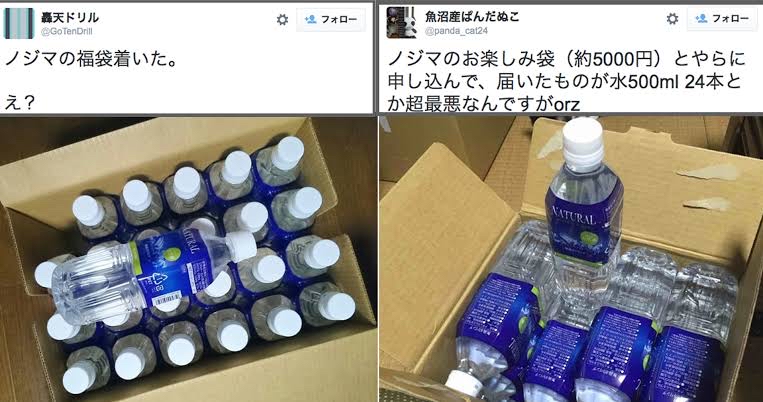 5400円の福袋で水(3000円分)を送ったノジマ、水が当たった人にポイント返還