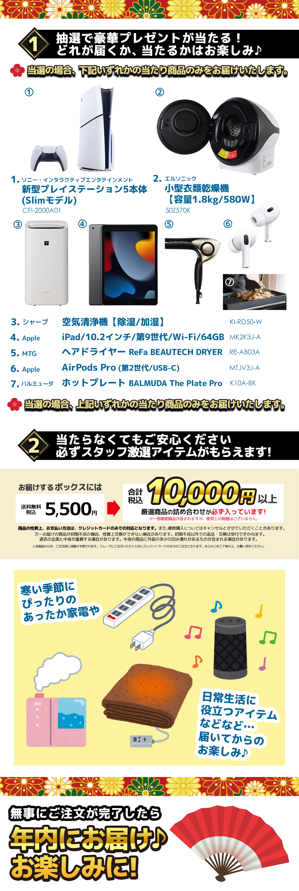 【2023年12月20日中に販売予定】年内お届けお楽しみ箱「お年玉BOX」 nojima-pleasantbag