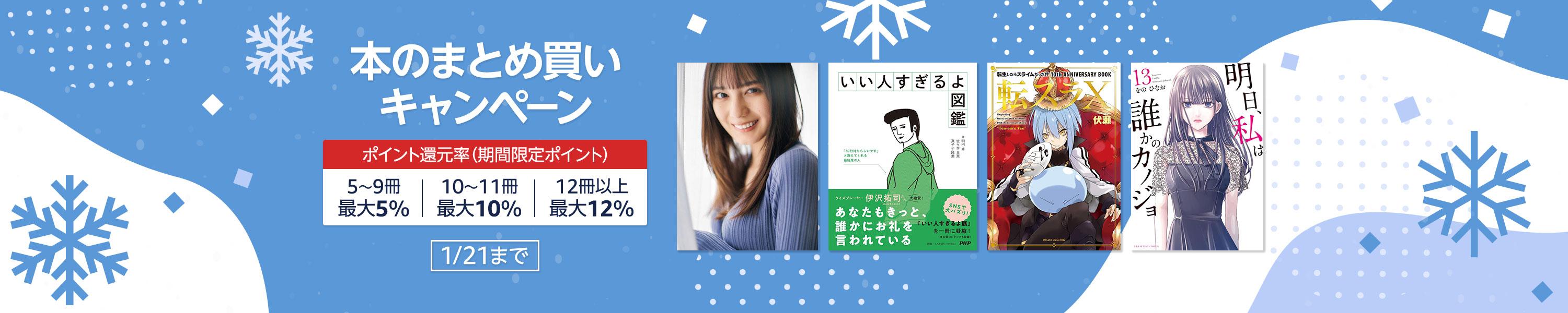 Kindle本冬のまとめ買いキャンペーン 4-7冊5%、8-11冊10%、12冊12%※期間限定ポイント(1/28まで毎週月曜~日曜日で開催)