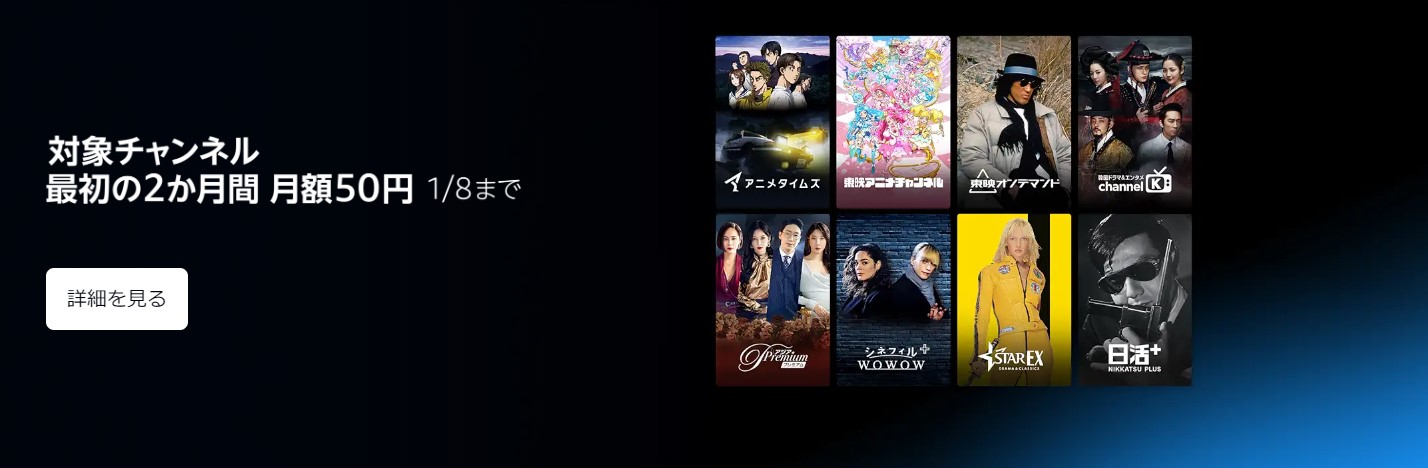 対象チャンネル 最初の2か月間 月額50円 1/8まで