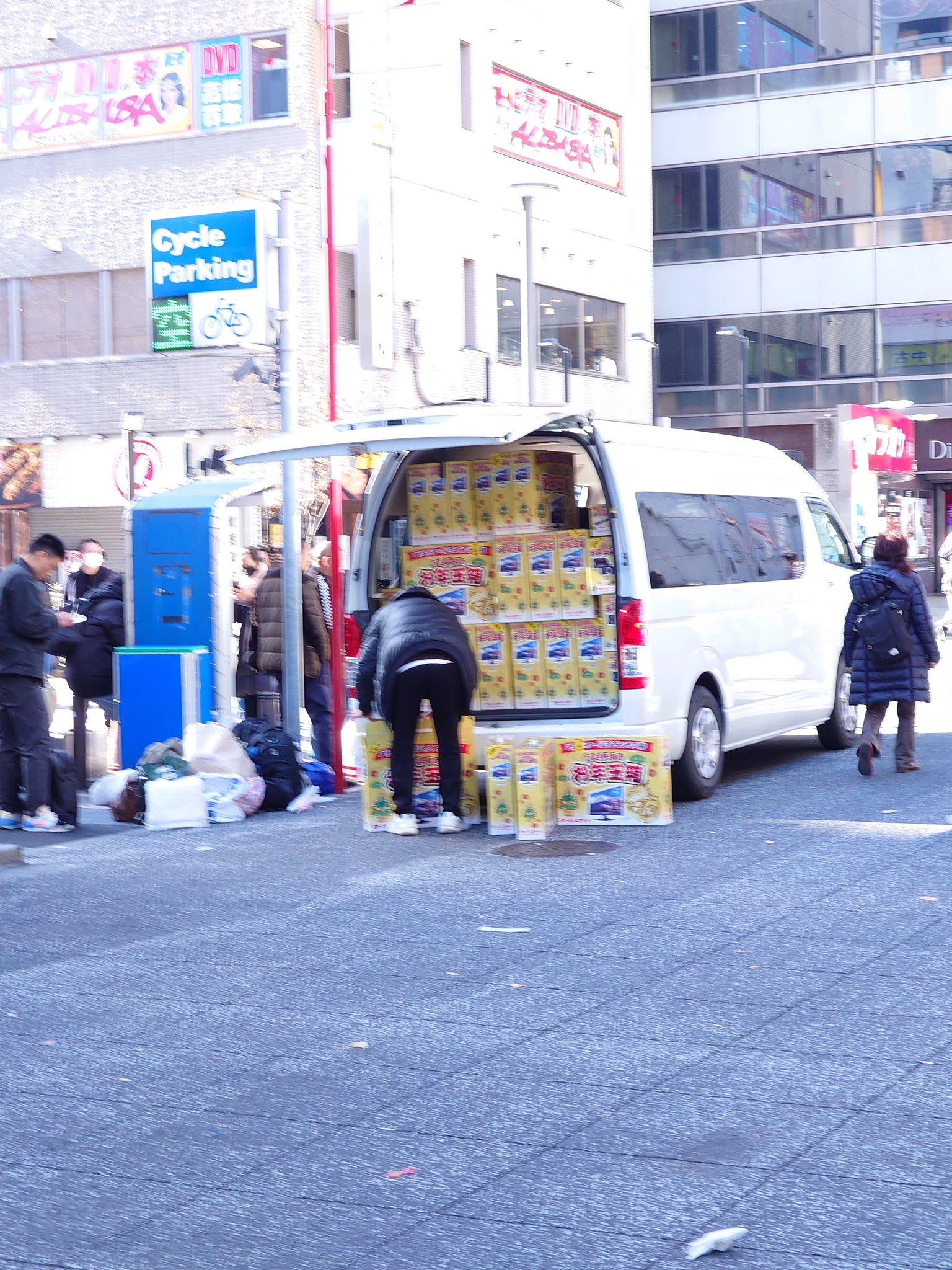 ヨドバシAkibaの近くの路上で中国人転売ヤーが「夢のお年玉箱」(福袋)を買い漁ったものを車に詰め込んでました。