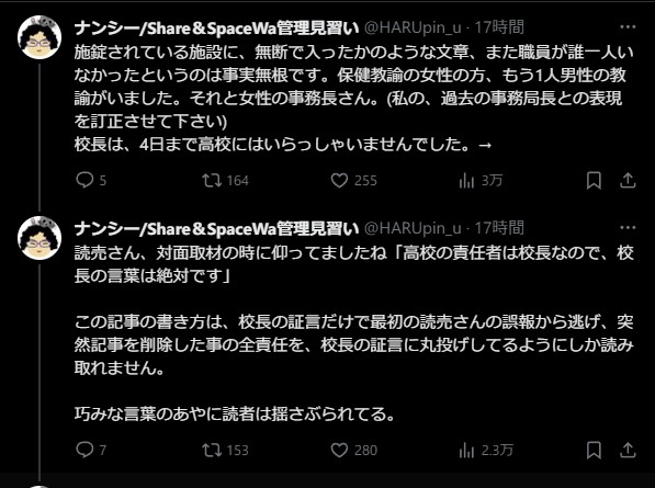 これ両方嘘ついてないって考えると事務長を名乗る不審者に追加で教員を名乗る不審者もおることになるやん