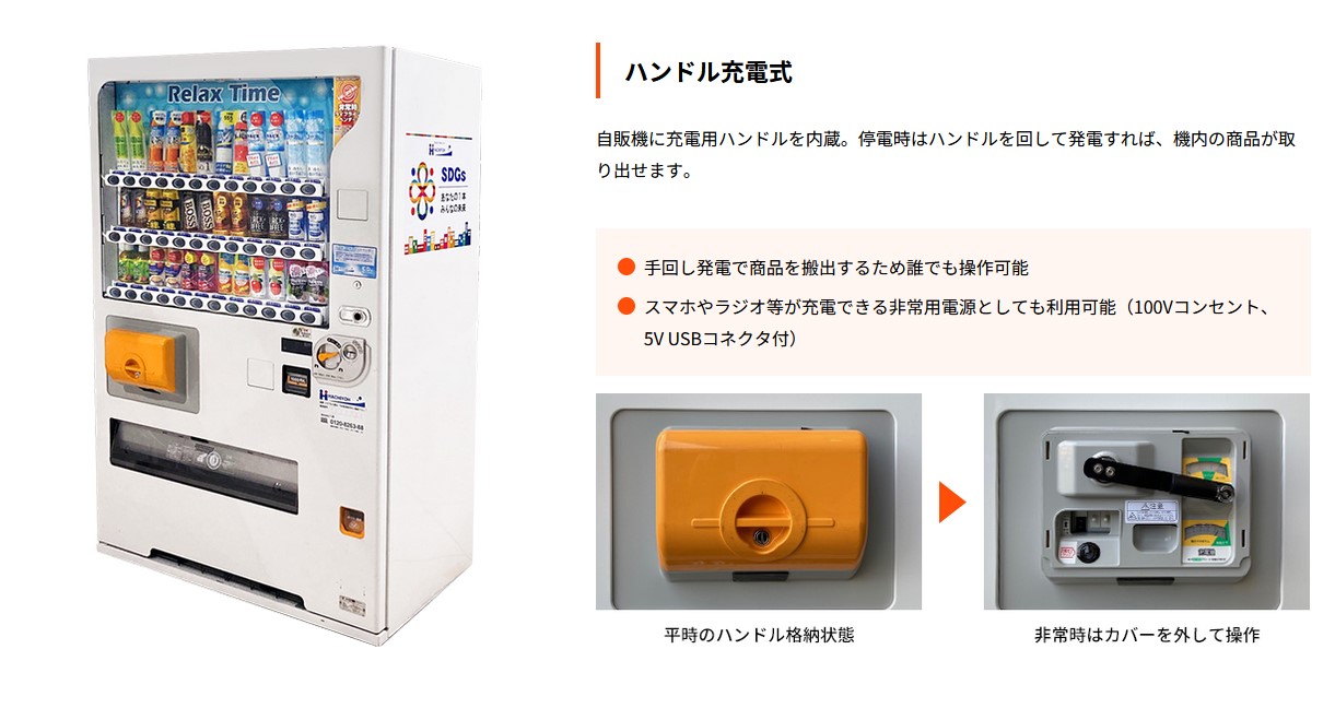 災害対応してるやつはこんな感じで予備電源型と手回し発電型とワイヤーで取り出すタイプがある
