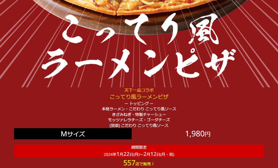 ピザハット2024年なってからグラタンピザ、ラーメンピザと小麦の上に小麦乗せる馬鹿しかやってない