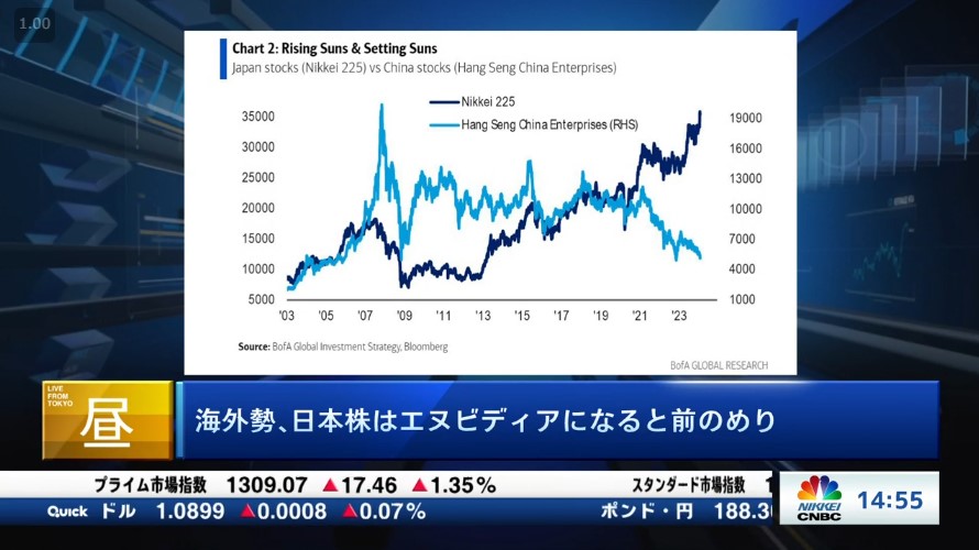 日経CNBCでNQN張間記者「海外勢、日本株はエヌビディアみたいになるぞと前のめり」(´・ω・`)