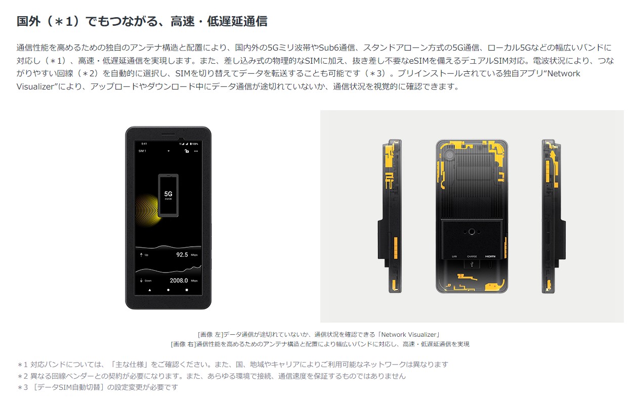 - 対応周波数:5G(1/2/3/5/7/8/20/25/28/30/38/40/41/48/66/71/77/78/79/257/258/260/261)、4G(1/2/3/4/5/7/8/11/12/13/17/18/19/20/21/25/26/28/29/30/32/34/38/39/40/41/42/46/48/66/71)