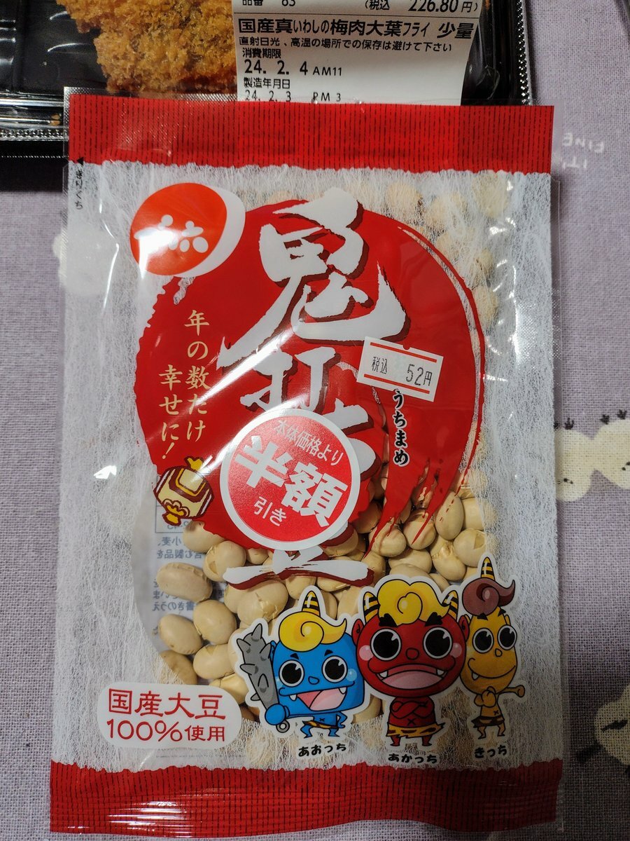 ここに引っ越して初めての節分だから3時間かけてスーパー9軒巡ったんだが