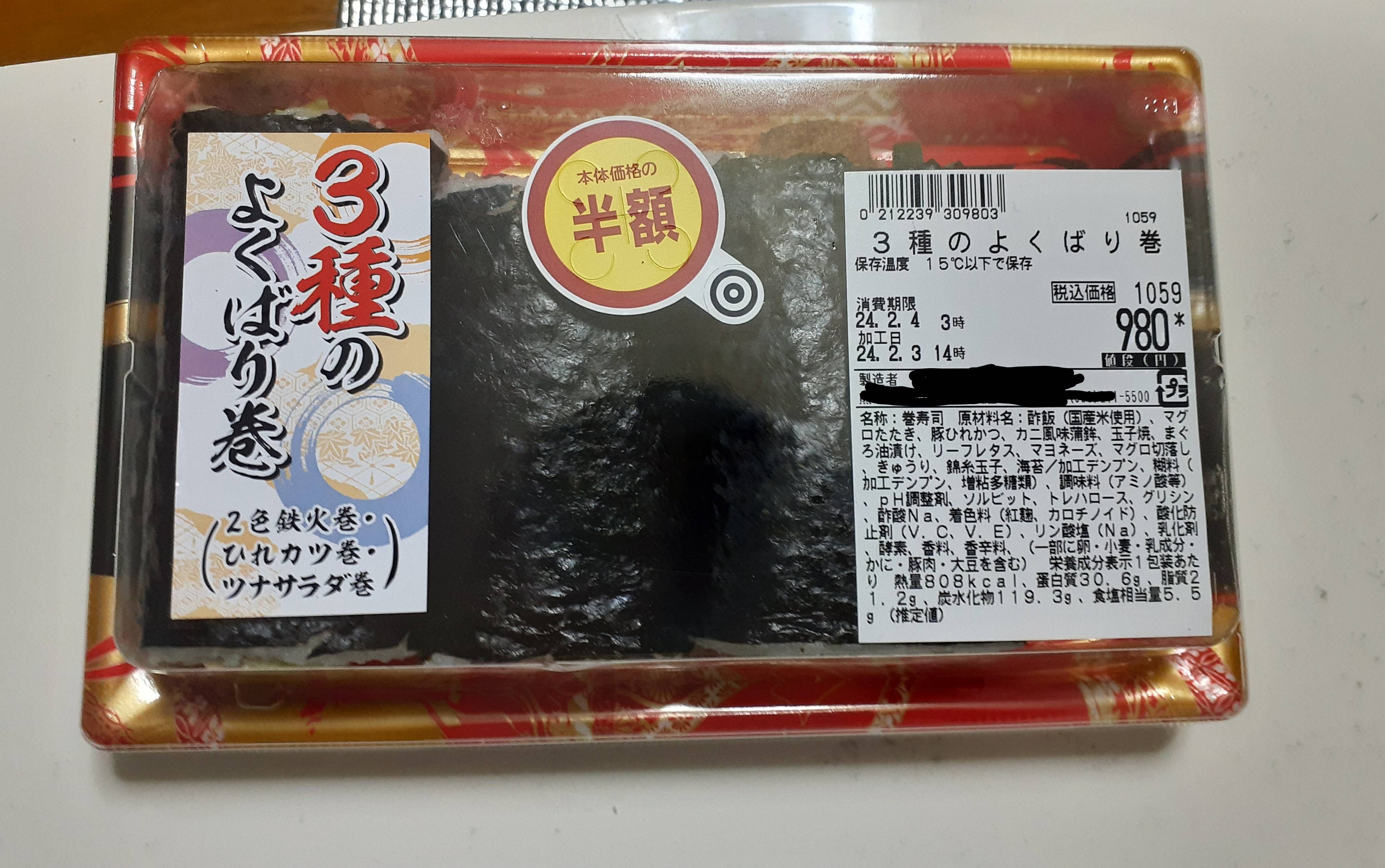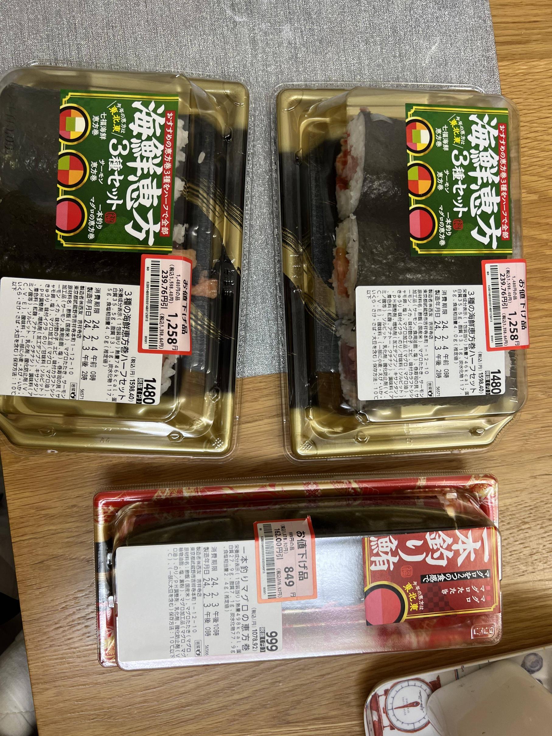 ワイはまいばすの300円の恵方巻買った😡