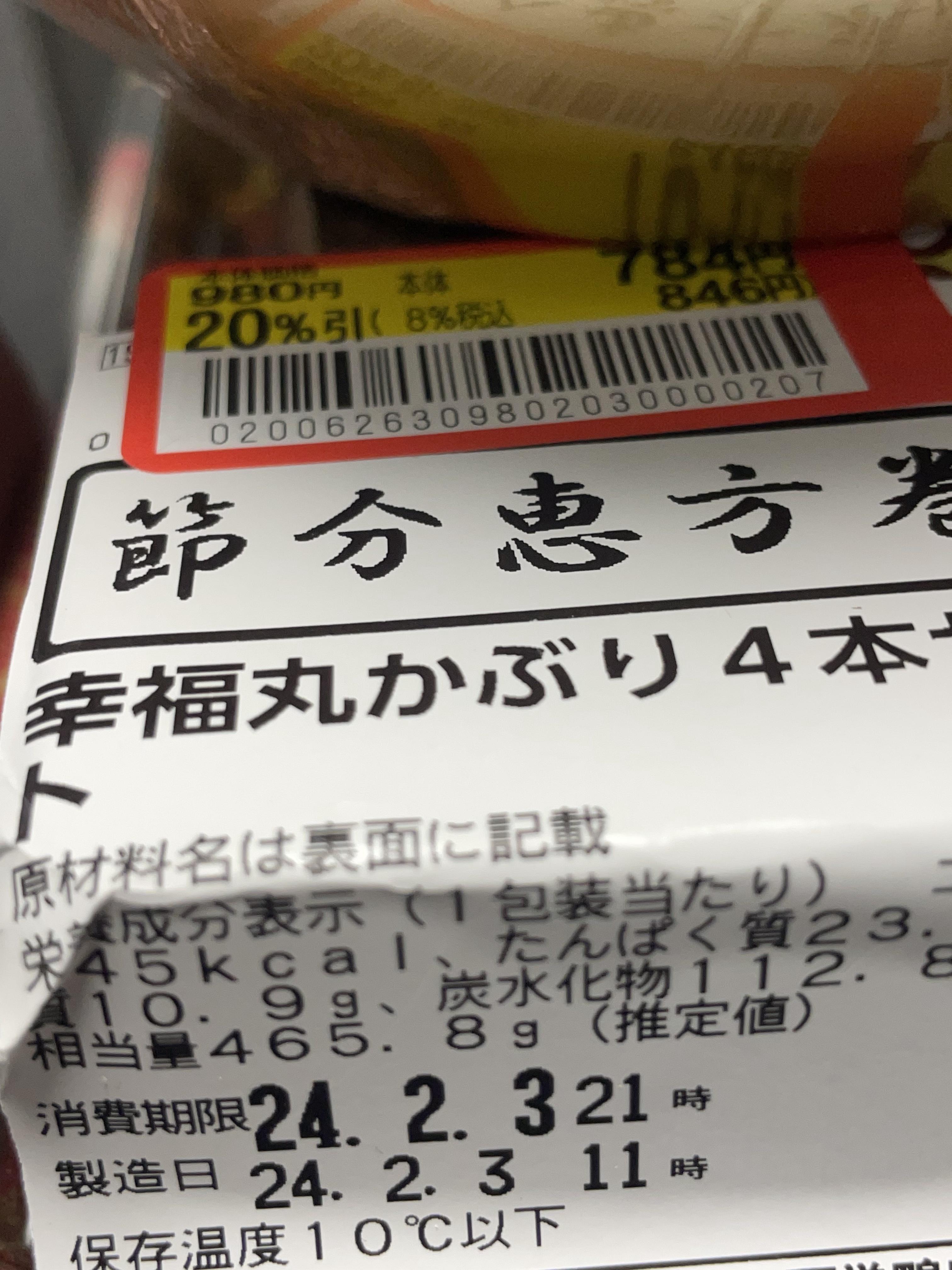 恵方巻きの残り個数と客の数的に20パーOFFが限界だと判断した