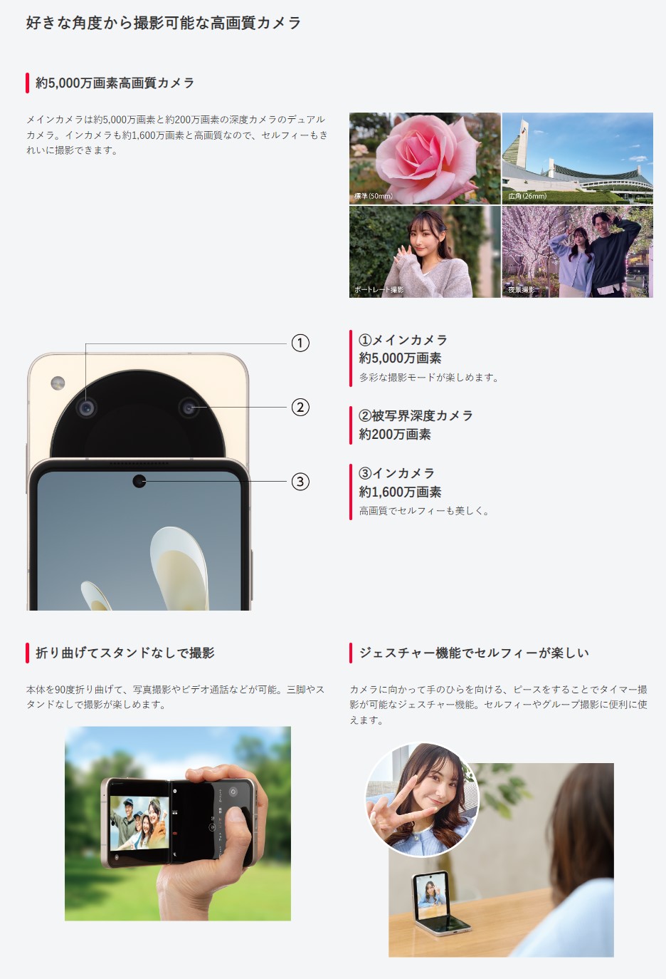 - 背面カメラ:5000万画素+200万画素