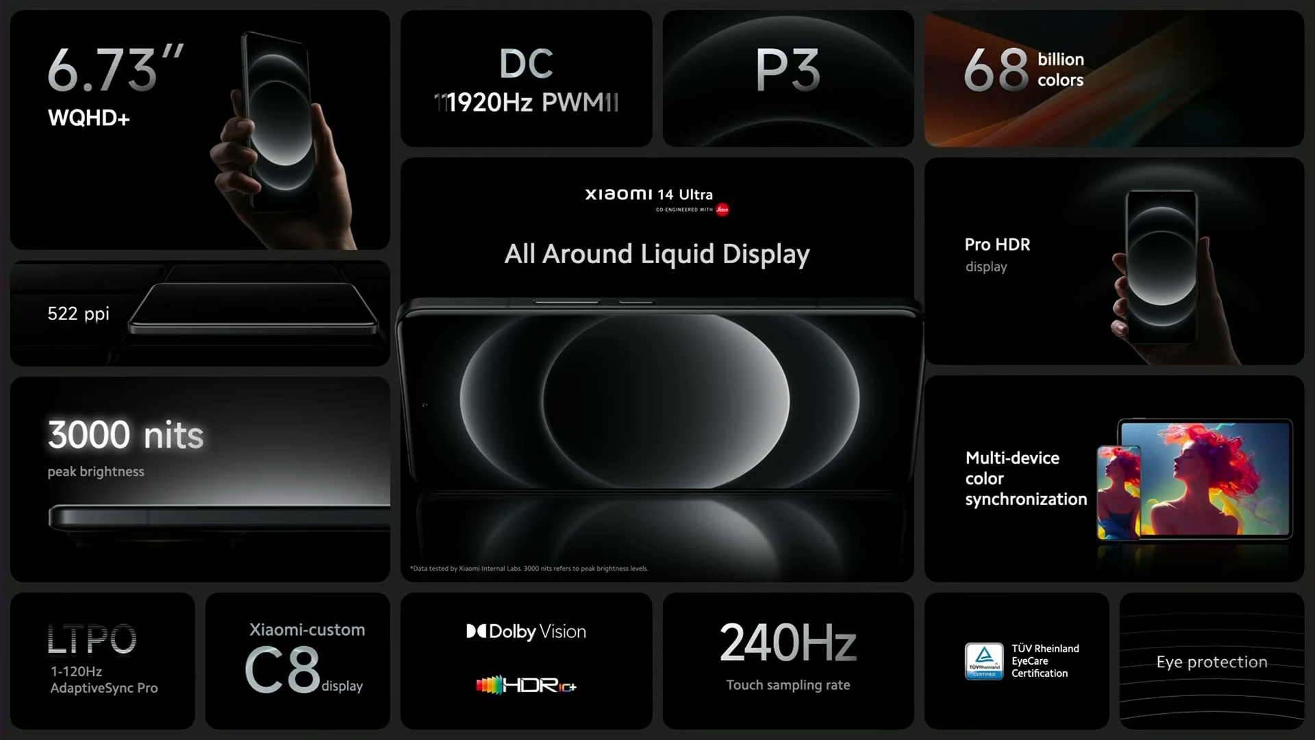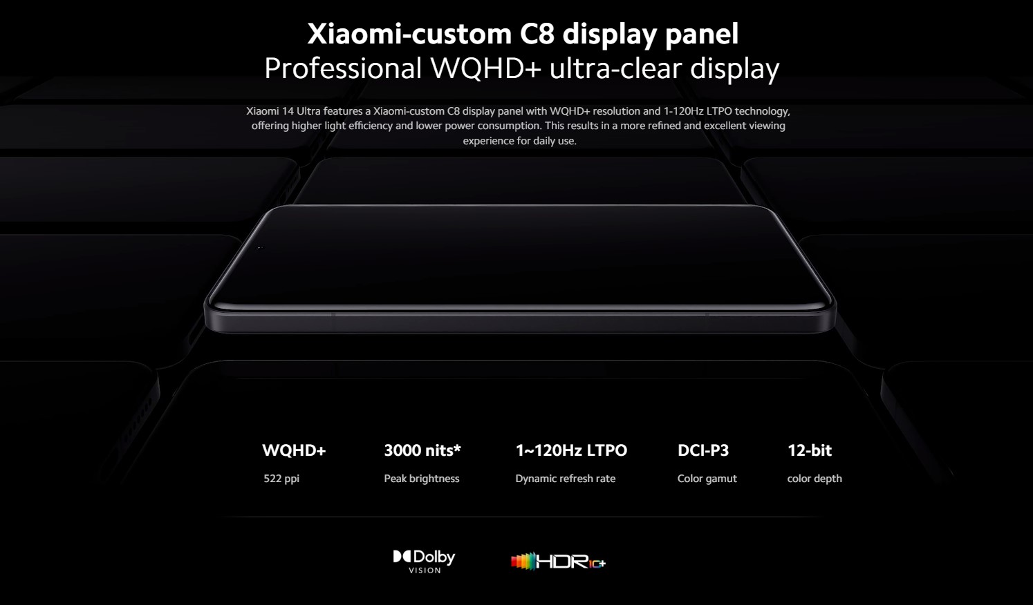 - ディスプレイ:6.73インチ(3200×1440・LTPO OLED・120Hz・ピーク輝度3000nit・Xiaomiドラゴンクリスタルガラス)、HDR10+/DolbyVisionサポート