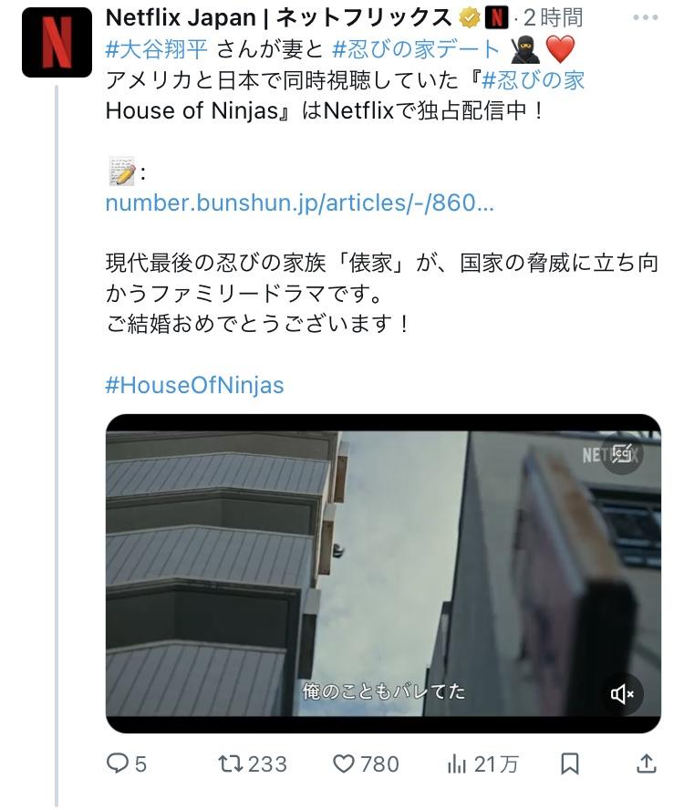 大谷が大空港占拠観てる可能性もある?