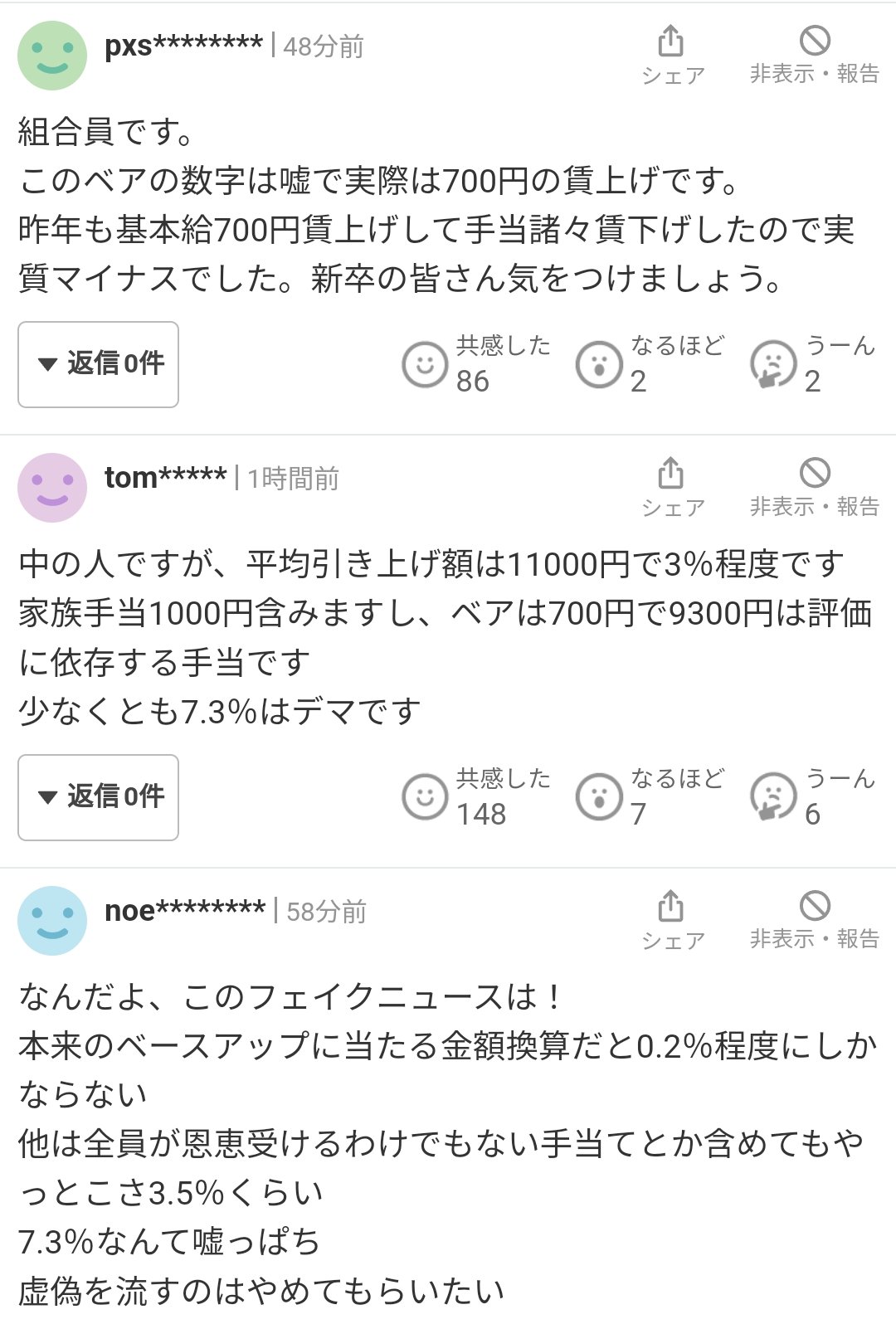 あくまで「賃上げ」の数字であって「ベア」の数字ではないからフェイクではないとでも言うんだろう