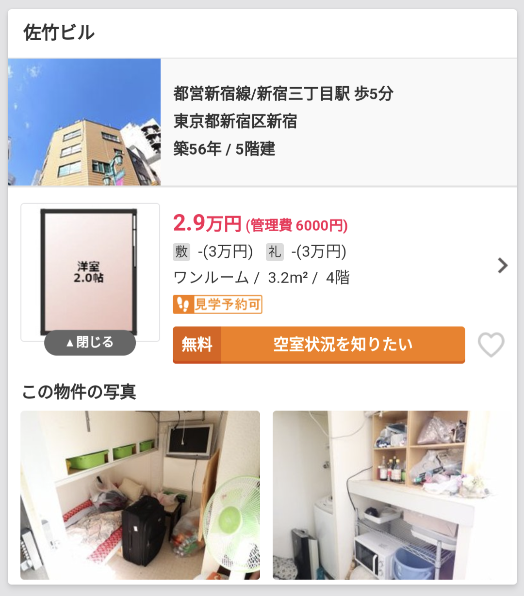 それと新宿で3万以下って時点でクソ安いわ
