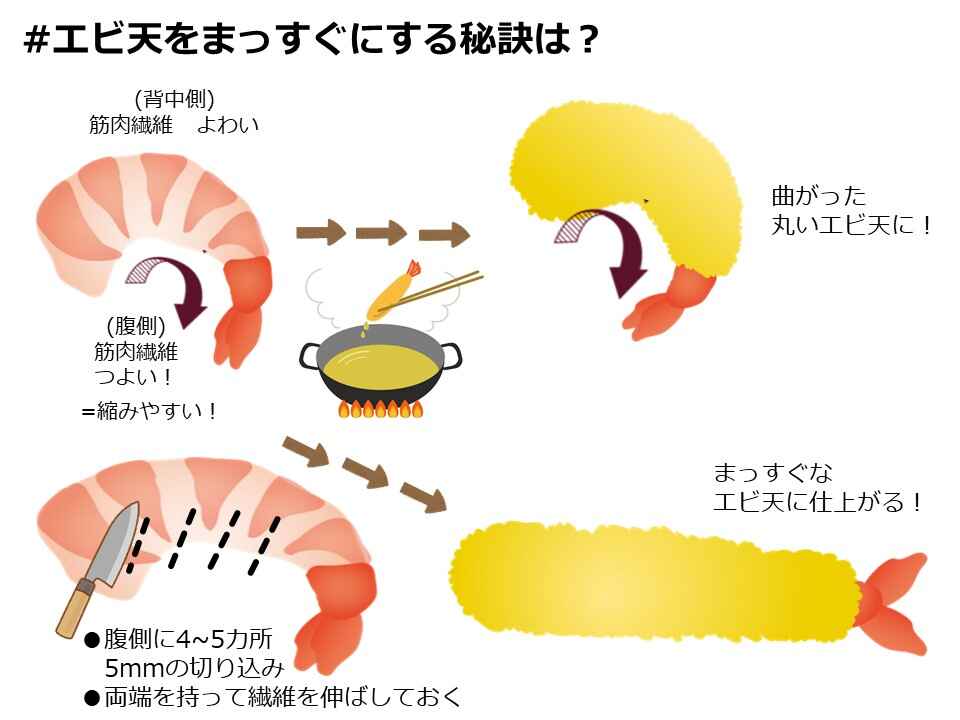 それも家庭料理のアジだと思って丸まったエビフライでええよね