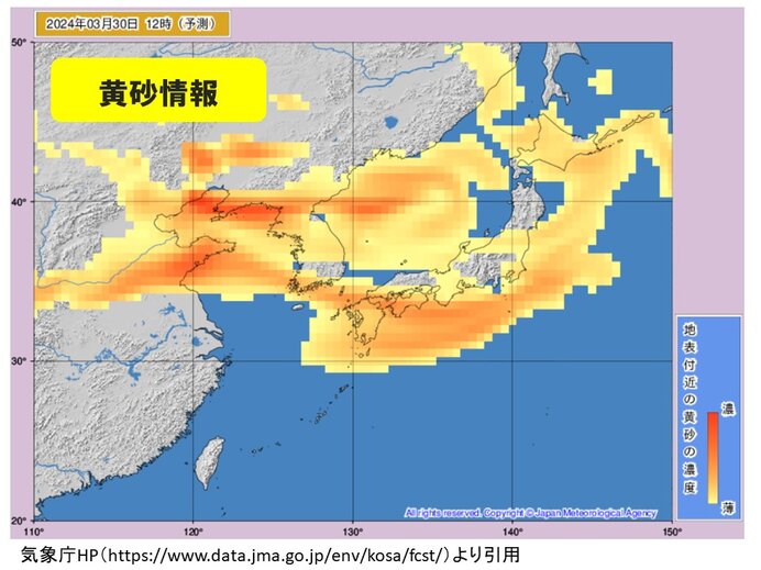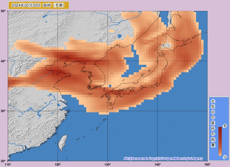 でも関東住みだけど黄砂はそれほどでもないと思う。花粉はひどい