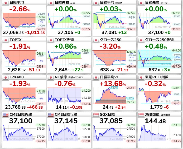 半導体がこれだけ下げれば、月曜日の日経も一波乱ありそう(´・ω・`)わくわく
