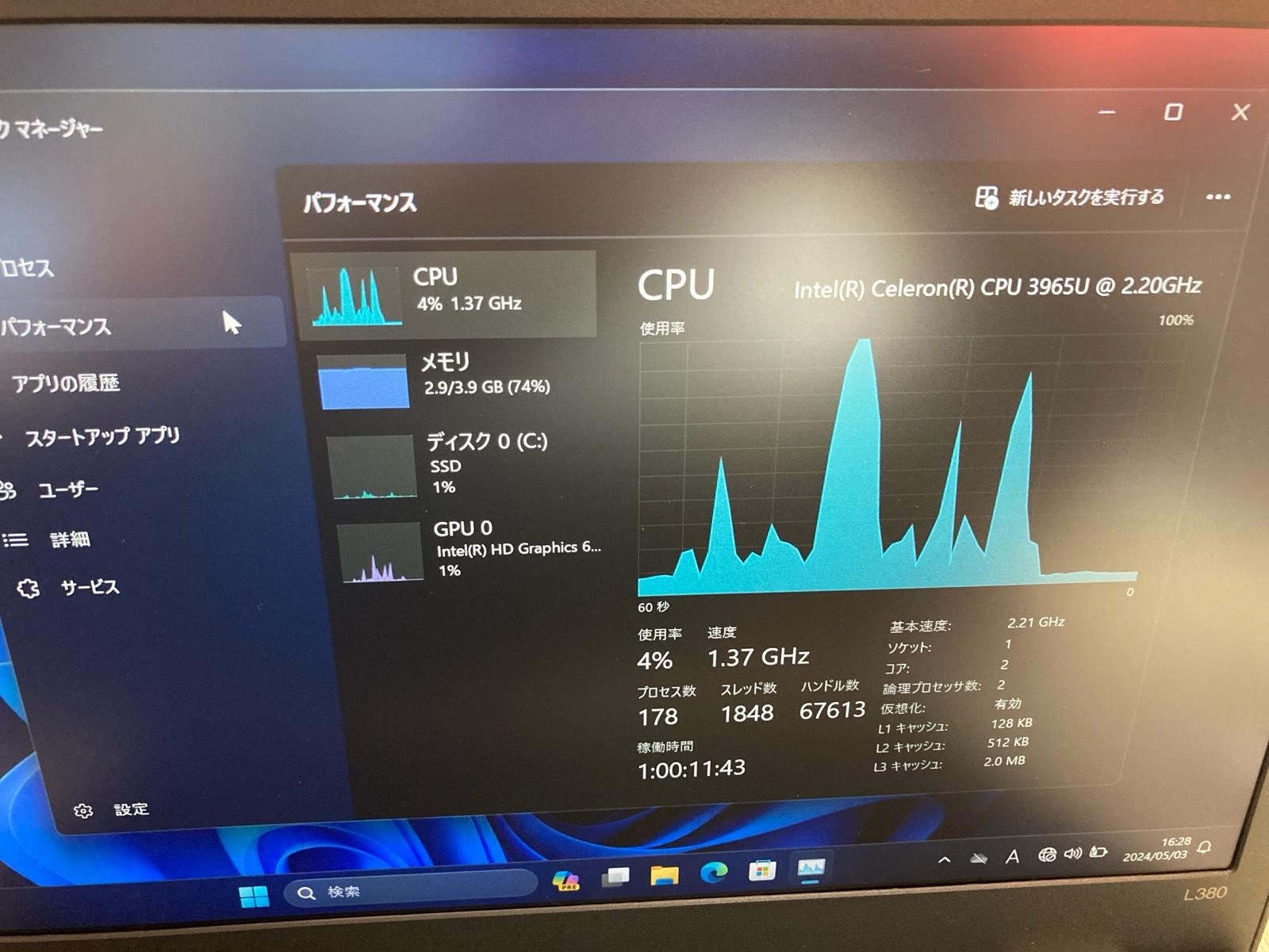 ちなみに知り合いの同じようなCeleronでSSDをHDDに置き換えた版のゴミパソコン使ってるやつはedge立ち上がりまでに30分かかる