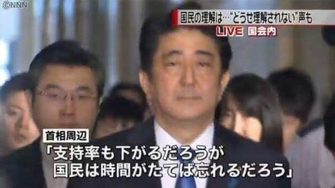 安倍「国民は怒っていても、時間が経てば忘れるだろう。嘘でも断定口調で叫び続ければ国民は信じる。」